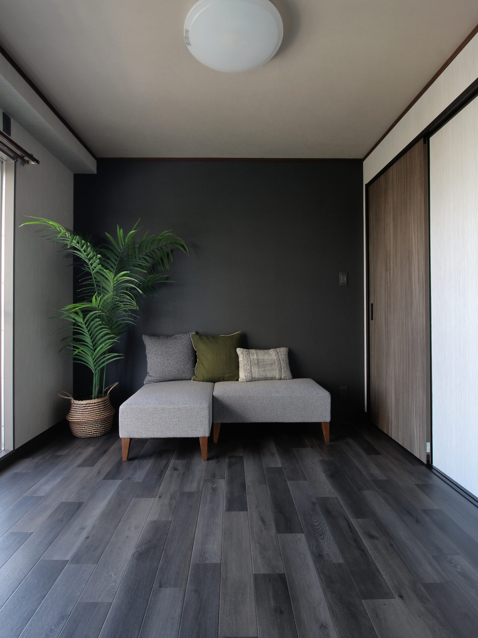 ・ダークトーンの内装で、単身向けでも落ち着いた印象に