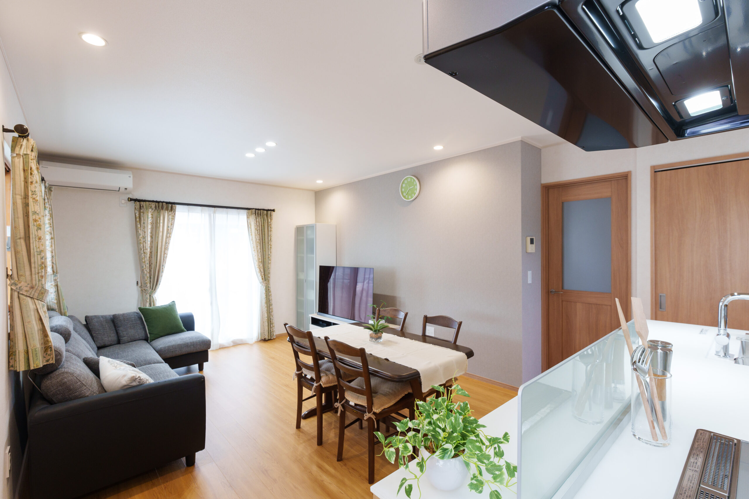 築25年の一戸建てのリノベーション。リビングの端に孤立していたキッチンを中心に据えたことで、家族を近くに感じるのびやかなLDKに。将来の暮らしも見据え、和室を寝室として整え、生活動線を改善する間取り変更も実現。収納力と動線を見直し、快適さと使いやすさを両立した住まいへと生まれ変わりました。